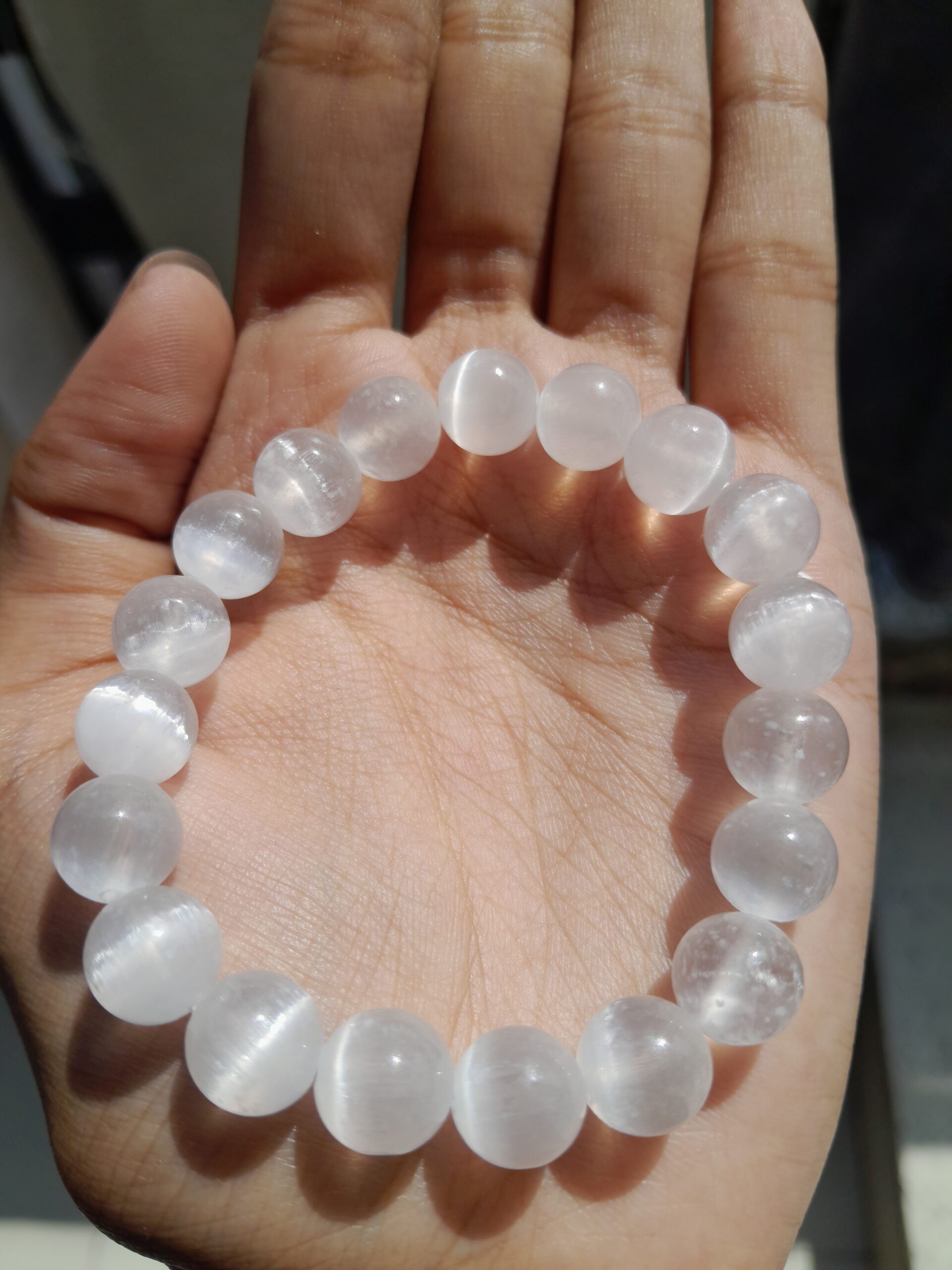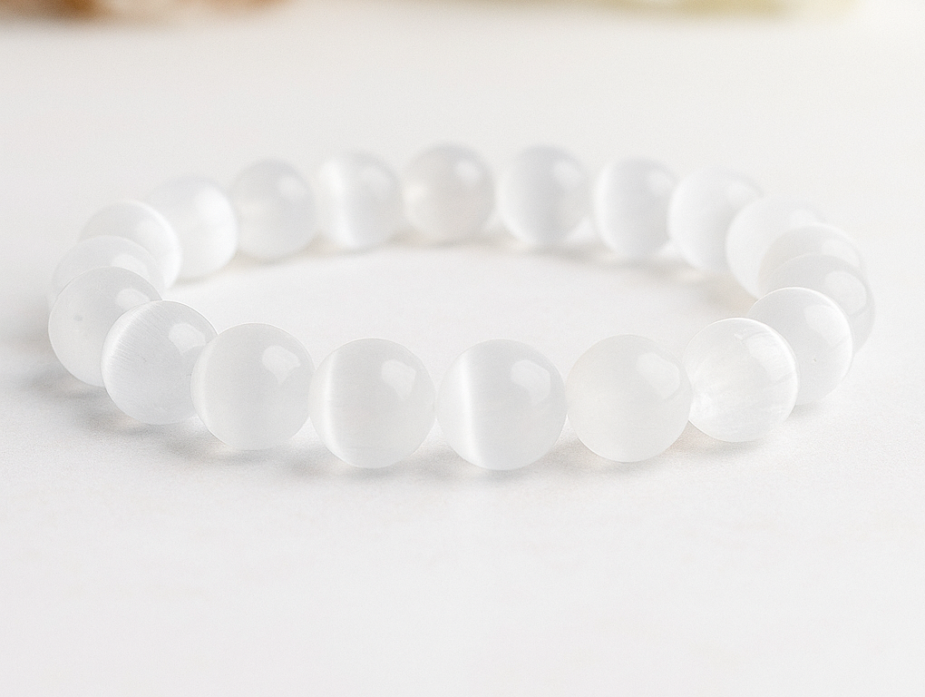 Energetically, Selenite is associated with the Crown Chakra, which governs intuition, awareness, and higher consciousness. Wearing Selenite helps remove negative energies, dispel confusion, and promote inner peace. It is often used to clear emotional blockages and recharge the aura, making it ideal for those seeking balance, mindfulness, and spiritual growth. Many crystal healers use Selenite to cleanse other crystals, as its energy is believed to continuously renew and purify itself.